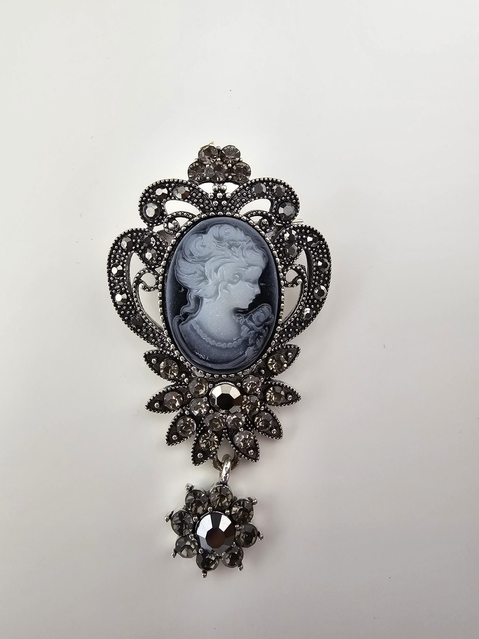 Hjem / Tilbehør / Pynt / Brosje Grå med grå svarovski