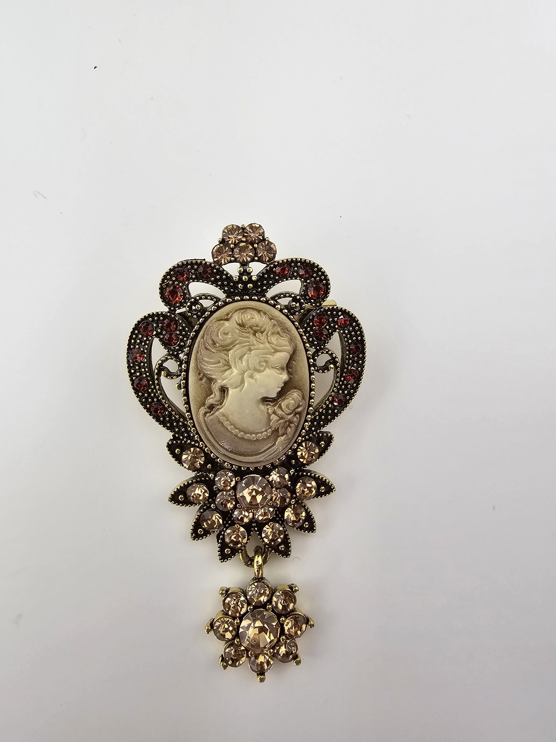 Hjem / Tilbehør / Pynt / Brosje Gull med rosa brun svarovski