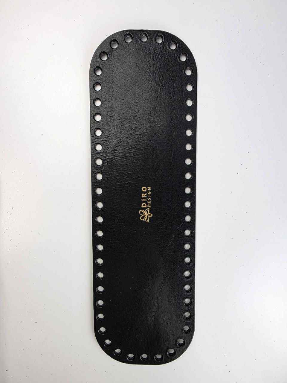 Eksklusiv italiensk lær bunn10x32cm. Tykkelse 2-3mm.Svart/blank med gull trykk