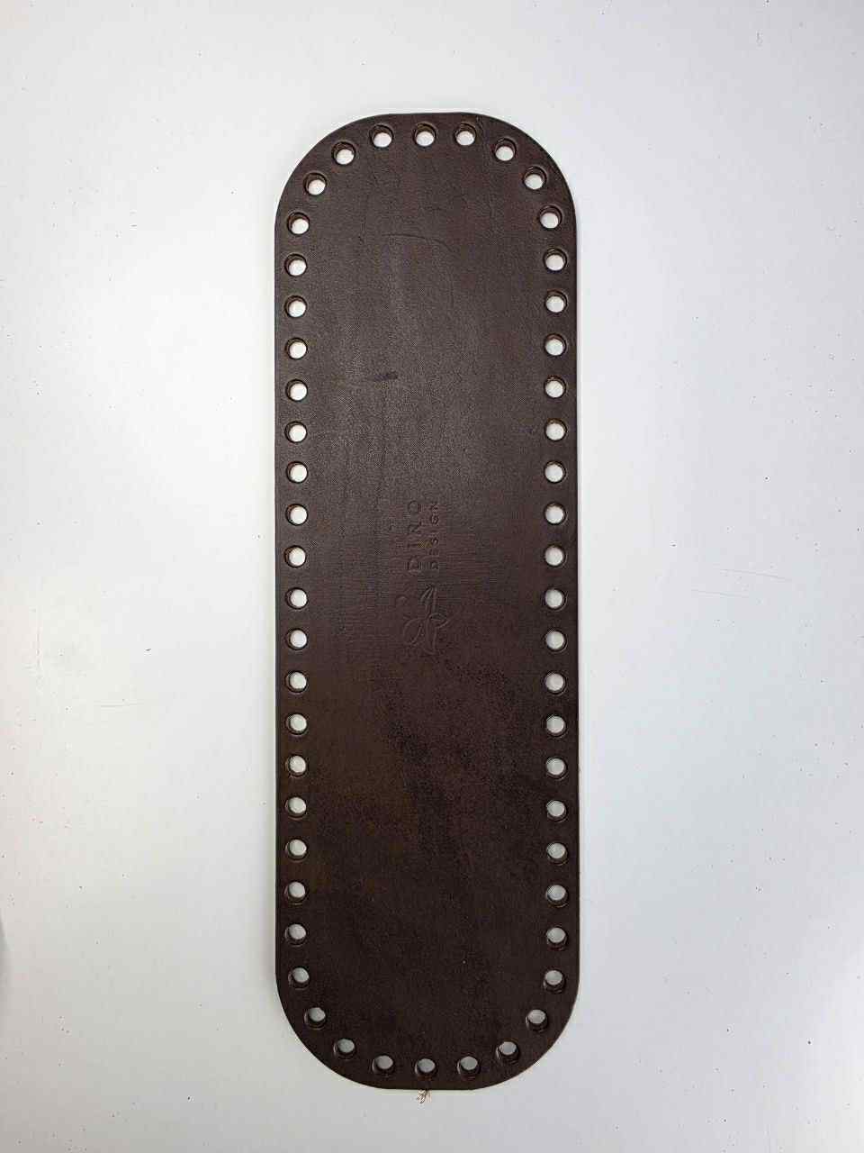 Eksklusiv italiensk lær bunn10x32cm. Tykkelse 2-3mm.Mørk brun med trykk.