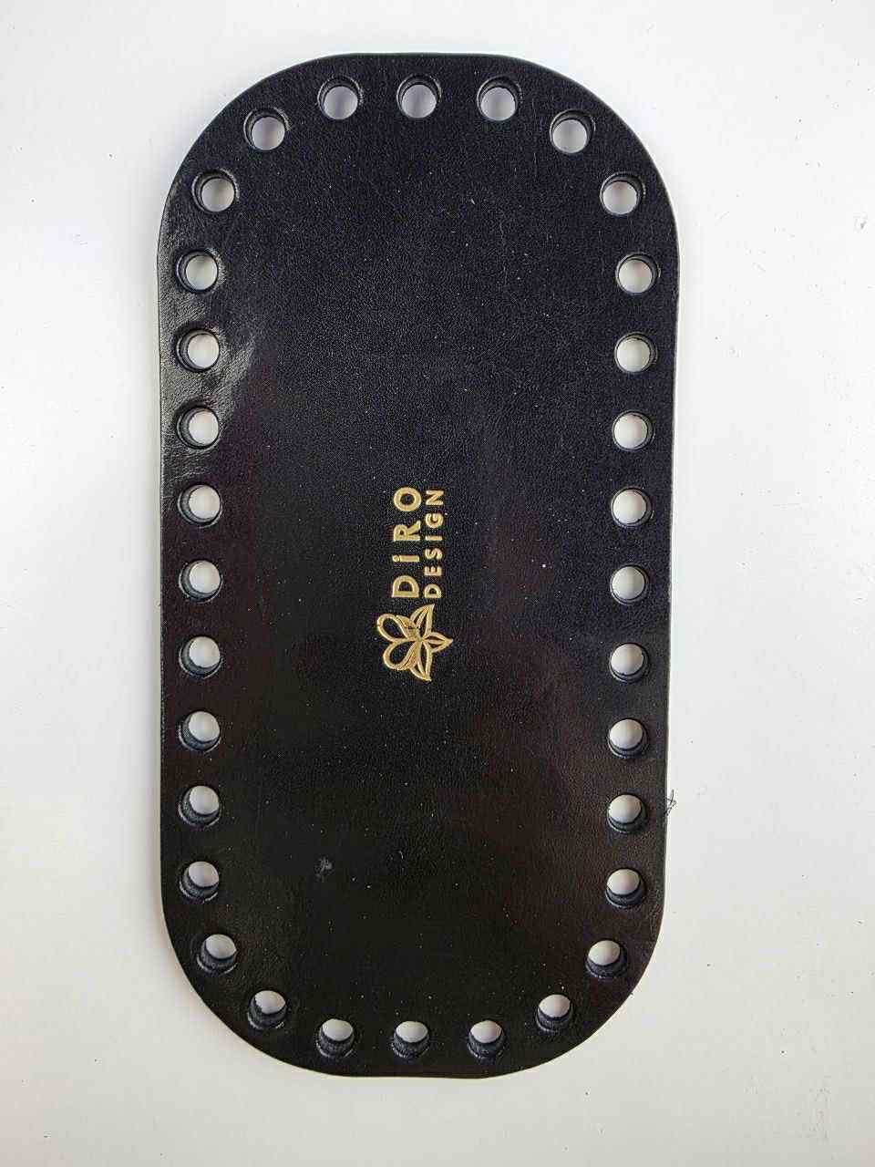Eksklusiv italiensk lær bunn 9x18cm. Tykkelse 2-3mm.Svart/blank med gull trykk