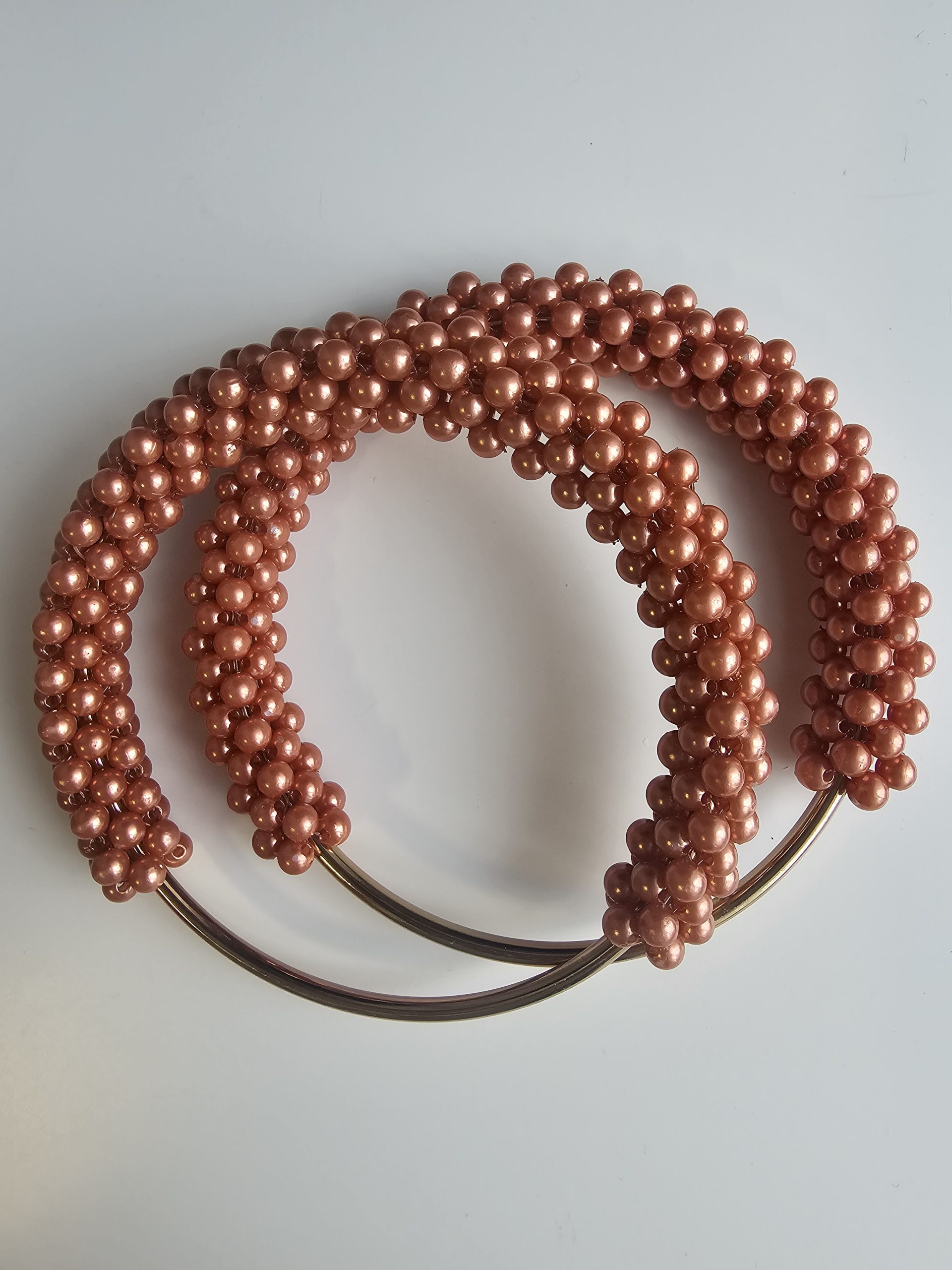 Eksklusive runde metal håndtaker til damer vesker som er pyntet med perler.