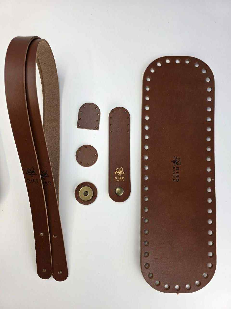 Italiensk lær sett passer perfekt til heklet vesker av hekletråd.