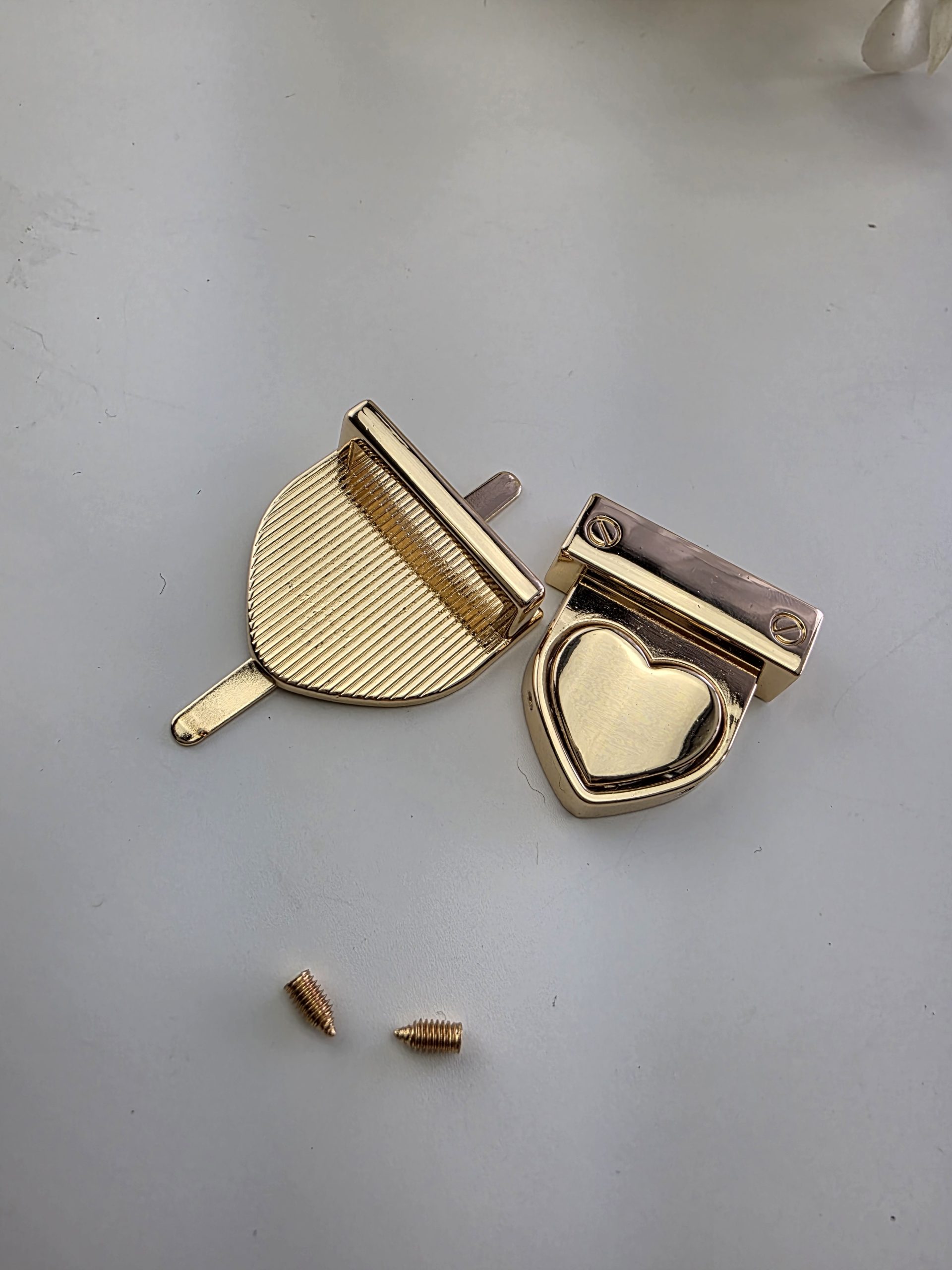 Elegant og praktisk hjerteformet klikklås i gullfarget, solid metall.
