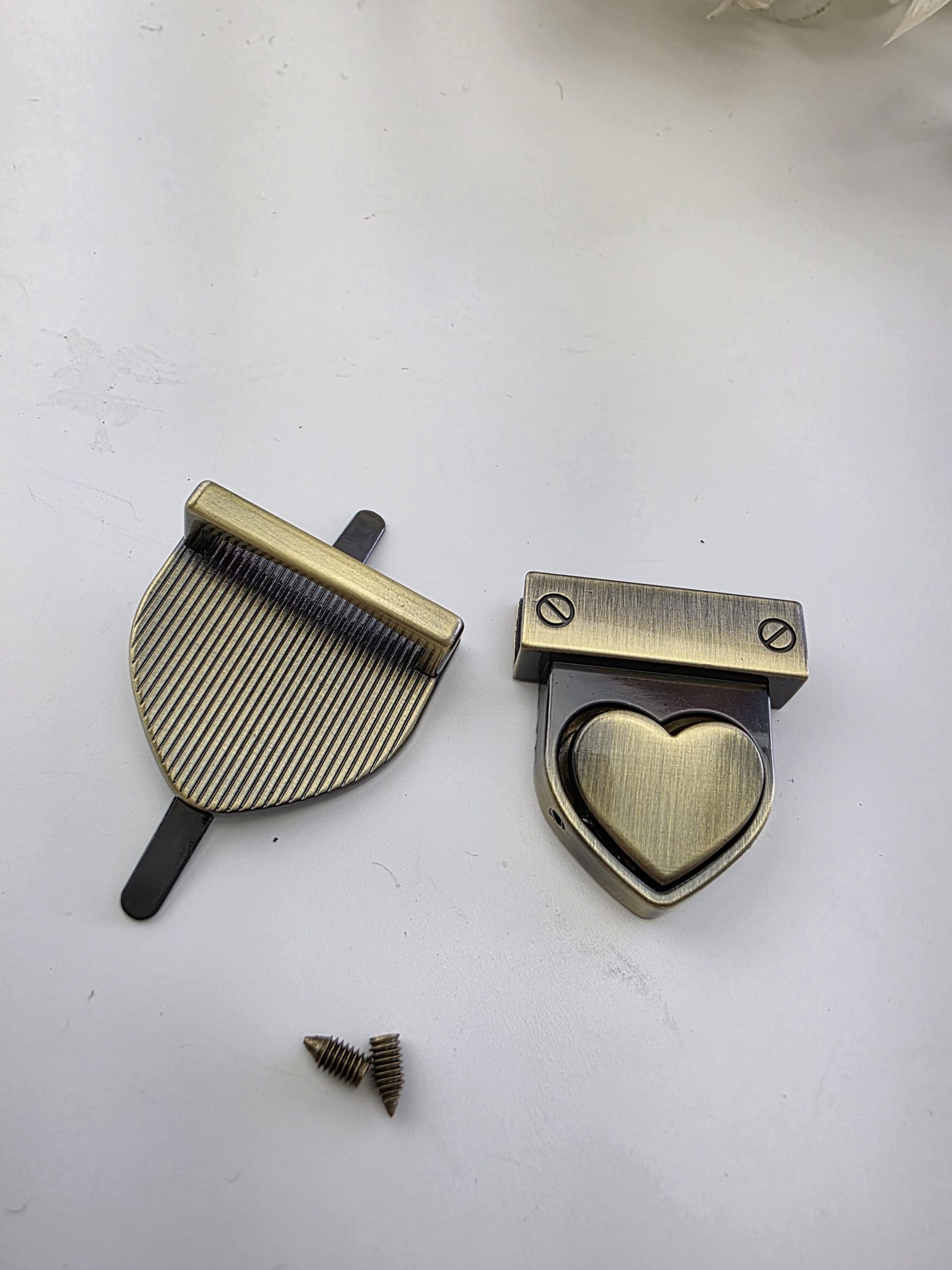 Elegant og praktisk hjerte formet klikklås i messing farget, solid metall.