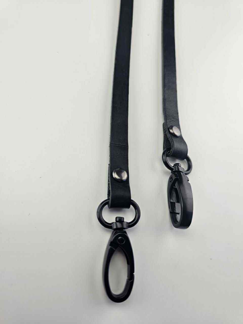 Ekta lær reimer svart farge med matt svart  karabinkrokker