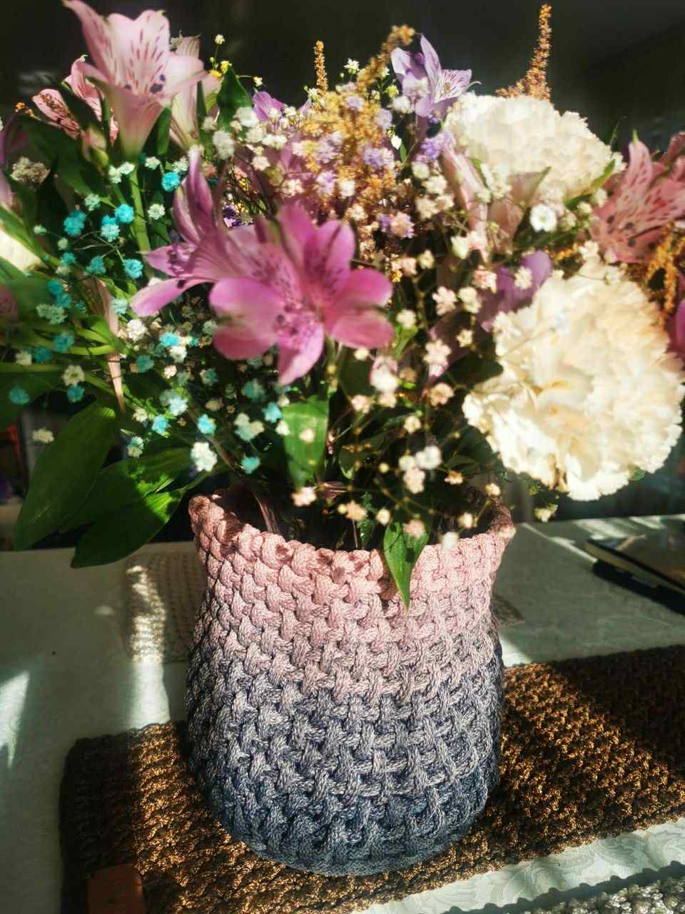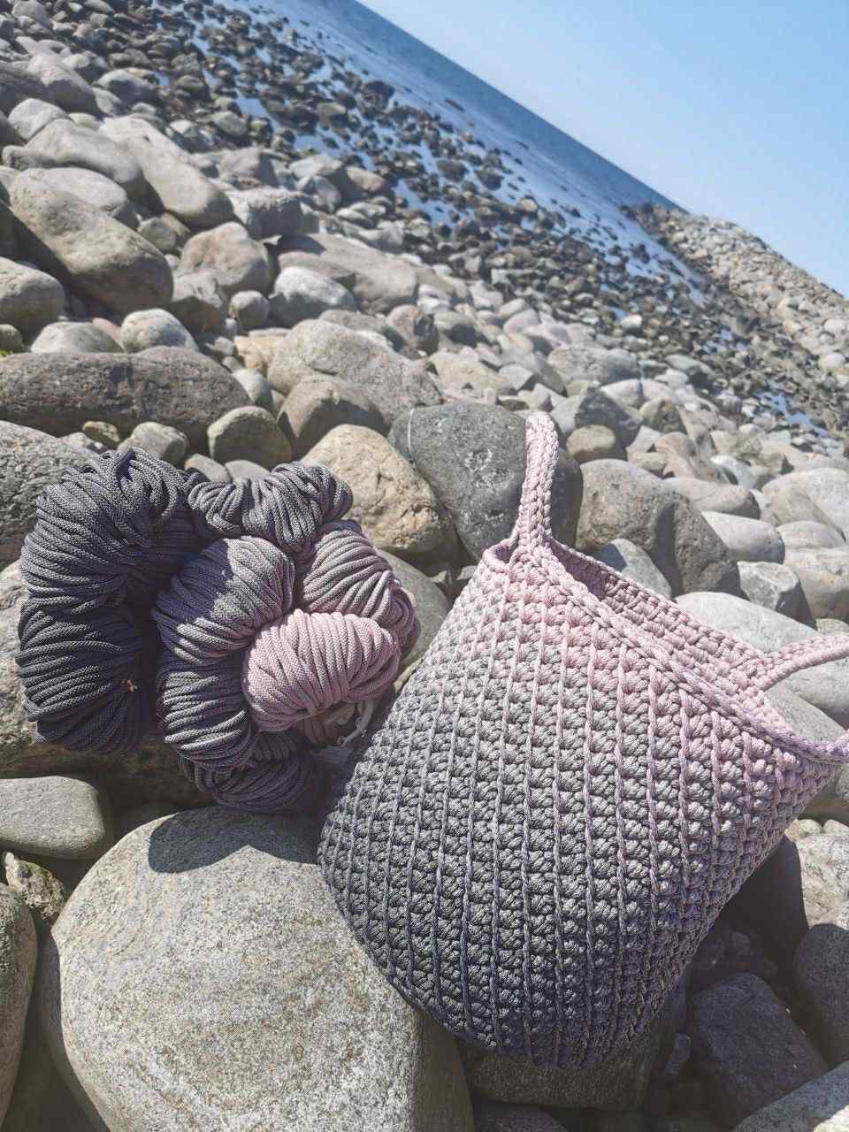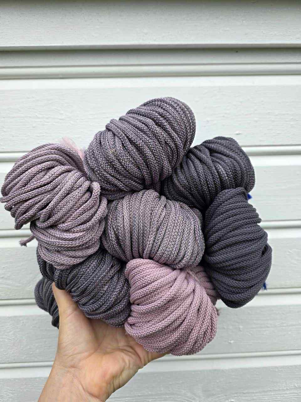 Ombre hekletråd 5 mm farge sett Askrosa/grå (59-15)