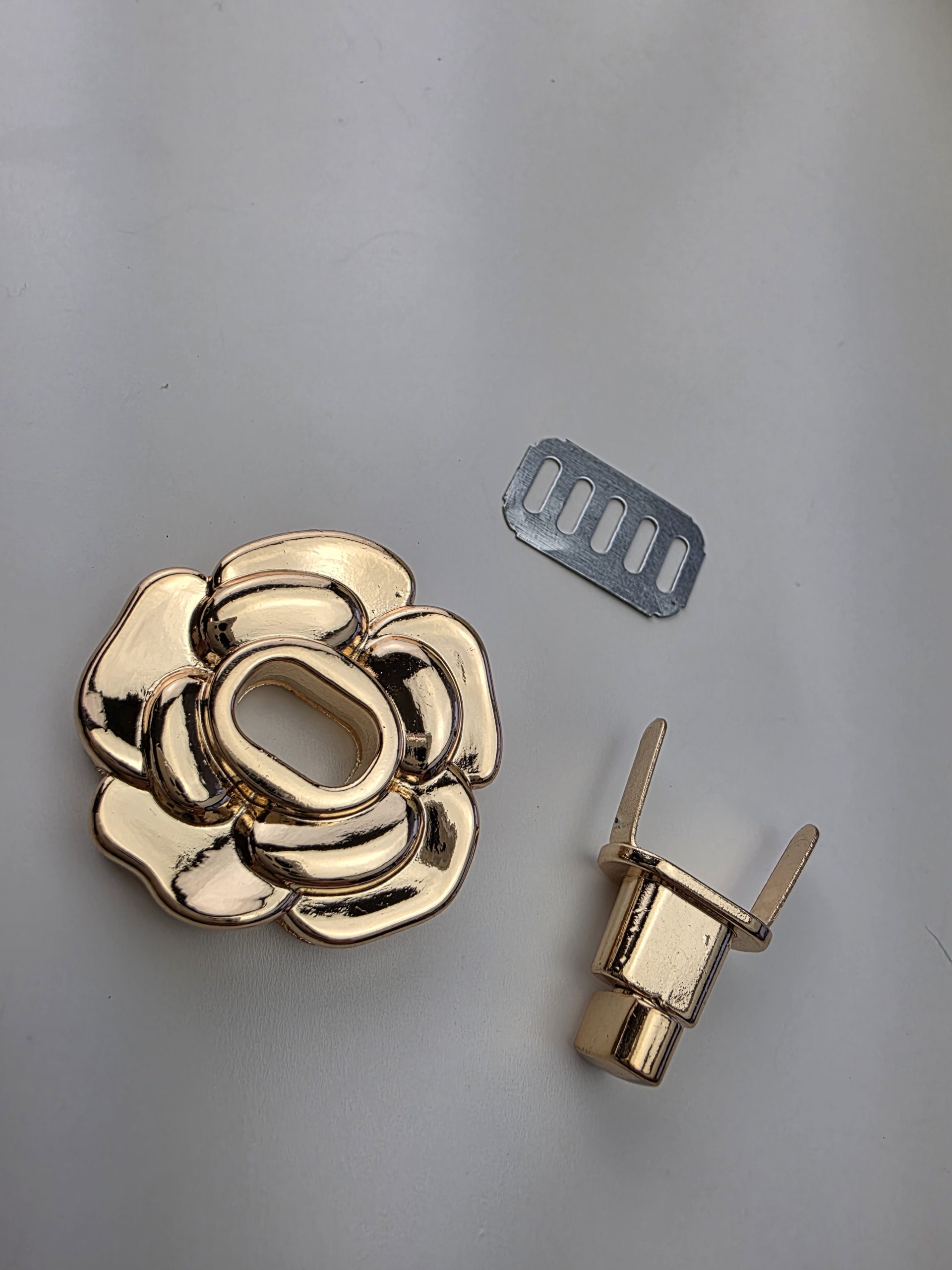 Elegant og solid veskelås i gullfarget metall, perfekt for både nye vesker og reparasjoner.